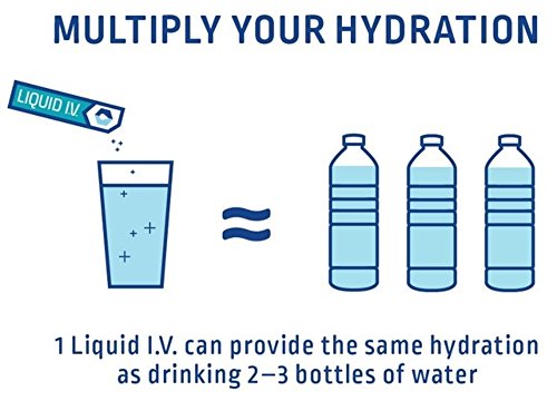 1 Liquid I.V. can provide the same hydration as drinking 2-3 bottles of water
