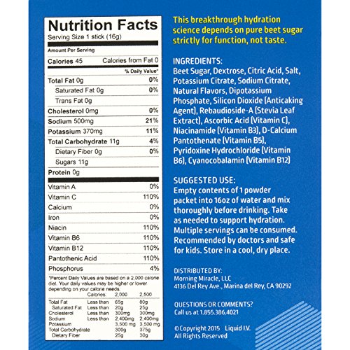 3x electrolytes as leading sports drinks (less than half the sugar and calories). Contains 11 essential minerals and vitamins with more Vitamin C than an orange and more potassium than a banana. 110% Daily Value of Vitamin C, B3, B5, B6, B12.