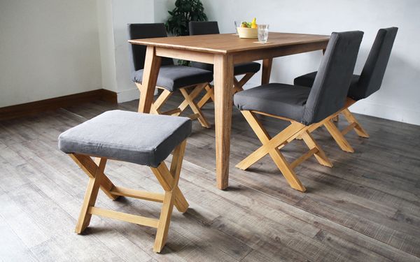 ● 脚部の”X(エックス)”形状が特徴的な、ポップでかわいいスツールチェア。