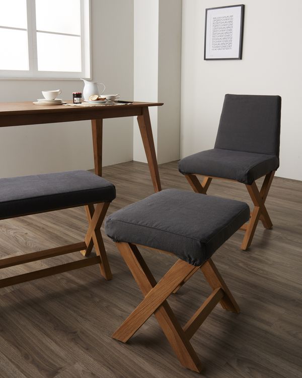 ●リネンを含んだ生地と天然無垢材との調和が、やさしいナチュラル感を演出します。