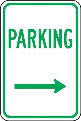 Accuform Signs FRP226RA Engineer-Grade Reflective Aluminum Parking Sign, Legend "PARKING (ARROW RIGHT)", 18" Length x 12" Width x 0.080" Thickness, Green on White