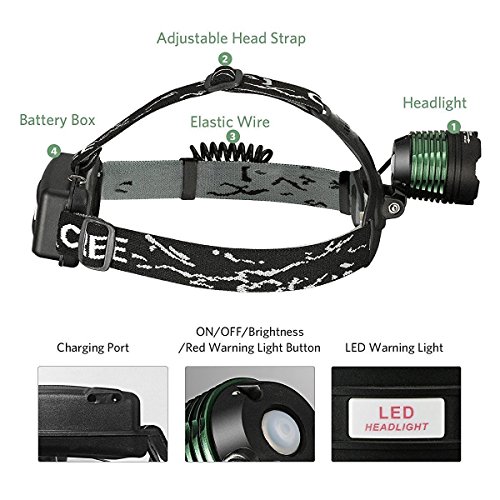 Zoweetek Waterproof Headlamp LED 800 Lumens Helmet Light with 6000mAH Rechargeable Batteries for Camping, Running, Hiking, Reading Etc