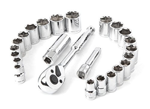 - The Set Includes:10-piece 3/8" Dr. SAE sockets: 5/16", 3/8", 7/16", 1/2", 9/16", 5/8", 11/16", 3/4", 13/16", 7/8"; 11-piece: 3/8" Metric sockets: 9, 10, 11, 12, 13, 14, 15, 16, 17, 18, 19mm; 3" Extension bar; 5/8"(16mm) Spark plug; 3/8" Ratcheting handle Durable