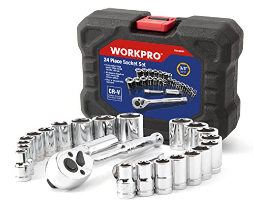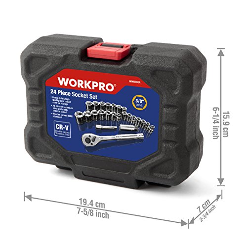 WORKPRO 24-piece Compact Drive Sockets Set 3/8" Ratchet with Blow Molded Case