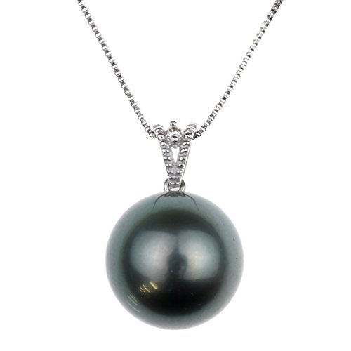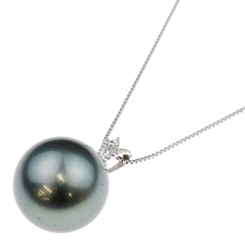 -. Title : 11-11.5mm Tahitian South Sea Cultured Pearl & Diamond 0.01ct Pendant Box Chain Necklace with 18K White Gold 17.5inc (45cm)