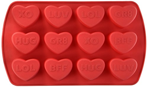 - 12-Cavity silicone mold features 8 unique expressions, including: LOL, BFF, XOXO, HUGS, GR8 and LUV