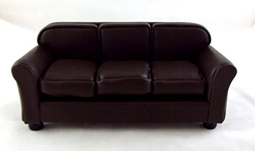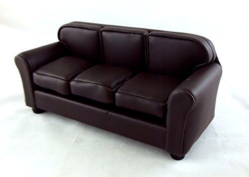 -. Title : Melody Jane Dolls Houses House Miniature Living Room Furniture 1:12 Brown Leather 3 Seater Sofa