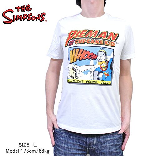 -. Title : SIMPSONS シンプソンズ★【海外限定】リミテッド エディション★『PIEMAN AND THE CUPCAKE KID』スーパーヒーローズ パロディー パイマン プリント Tシャツ【メンズM/L】[白]【tss-007】