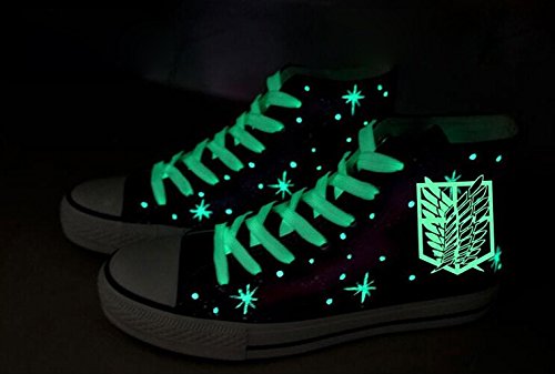 -. Binding : Misc. -. Brand : Telacos -. Feature : Attack on Titan Shoes Sneakers / Fabric: High quality canvas + Rubber / Please check our size chart picture before you choose the size. / Please put it at the sun.Then it can light in dark place. / Brand new and good quality! -. Label : Telacos -. Manufacturer : Telacos -. ProductGroup : Sports -. ProductTypeName : SPORTING_GOODS -. Publisher : Telacos -. Studio : Telacos -. Title : Attack on Titan Shingeki No Kyojin Wings of Freedom Cosplay Shoes Canvas Shoes Sneakers Luminous