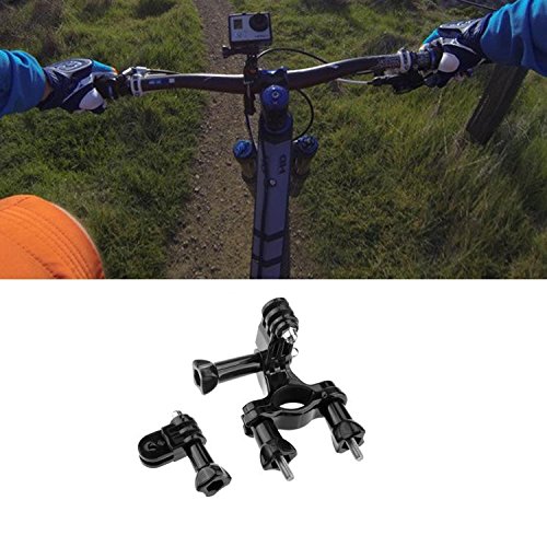 - Bike Handlebar Mount + Tripod mount adapter + Long Srew. The bike handlebar mount with universal 1/4 inch screw can firmly attach your camera to bicycle handlebars. The 180- degree swivel head of the mount for you adjust camera in any angels, it fits handlebar with about 20-30 mm diameter.Application 8: 360 Rotary Clip Mount + Long Screw Bolt.The clip allow you to hang a GoPro on your Chest Strap in different places and you can swivel the camera 360 degrees on the clamp.