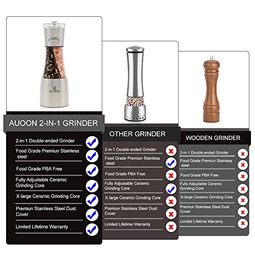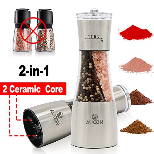 This product, with 2 in 1 design and stainless steel material, can be used to grind pepper and salt by two ceramic rotors and durable for use. It's a good grinding tool for pepper in the kitchen. Features: Stylish 2 in 1 design, grind salt and pepper with the same mill and save some space in the kitchen. With marked chambers for salt and pepper and a screw off top, refilling is a breeze. Stainless steel material, high quality and durable for use. The grinder operates manually so no batteries required, just turn and grind. Ceramic rotors that are tough and durable. Wonderful gadget to make freshly pepper powder spice for enjoying a tasty salad or steak. Perfect to promote healthy life and for all the meals of the day. Specifications: Color: Silver Material: Stainless Steel Acrylic ABS Ceramic Rotors 0 |