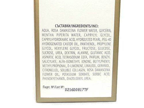 -. Feature : Organic rose oil, organic rose water, black pearl extract, natural mint water, collagen, D-panthenol / Specially developed formula, enriched with a complex of natural active ingredients that refreshes, tones and softens the skin without removing its hydro lipid barrier / The biologically active mixture HydroplexTM contains substances similar to the natural moisturizing factors of skin-mono- and disaccharides, amino acids and urea-which are especially needed to promote healing / Collagen improves skin's elasticity, making it soft and smooth / Parabens free