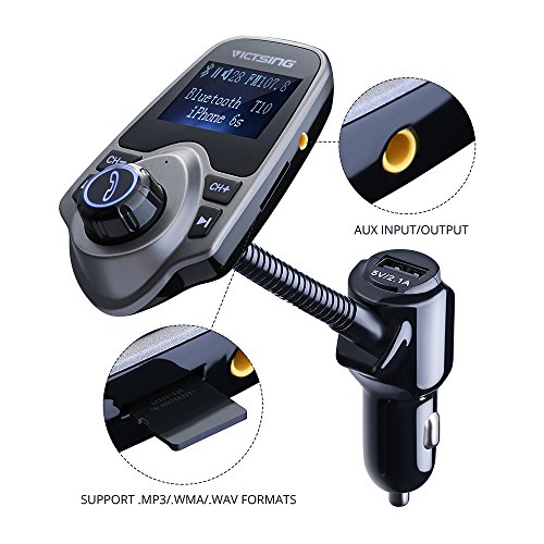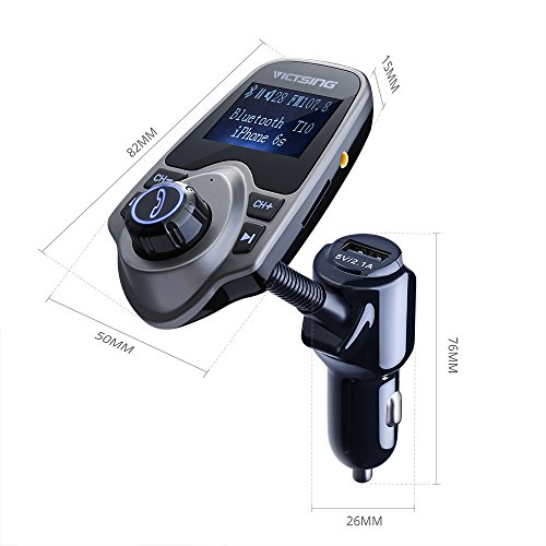 VicTsing Bluetooth FM Transmitter, Wireless In-Car FM Transmitter Radio Adapter Car Kit With USB Car Charger AUX Input 1.44 Inch Display TF Card Slot