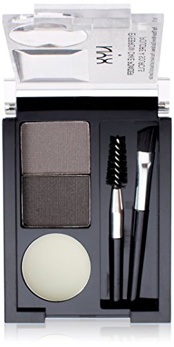 Eyebrow compact that includes two shades of powder to fill in and define brows and a pot of wax to hold brows in place