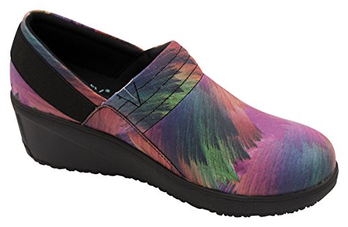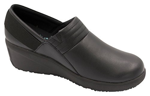 Product Description Oil Slip Resistant rubber outsole. Multi Layered open cell OrtholiteTM Insole provides exceptional support and breathability. The top layer is ImpressionsTM that conforms to the foot. Insole is removable for use with Orthotics. Genuine Leather slip-on upper. Printed Infinity logo on insole lining. Infnity pin on side panel. Polyurethane shock-absorbent wedge midsole. The Insole's top fabric is Anti Microbial treated to reduce odor-causing bacteria. Heel height: 2" Brand: Infinity FootwearGender: Women'sFeatures: Step In, Slip Resistant 0