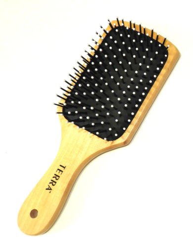 Terra Natural Wood Professionall Hairbrush All Hair Type Vinyl Tip Bristles Spa Massage