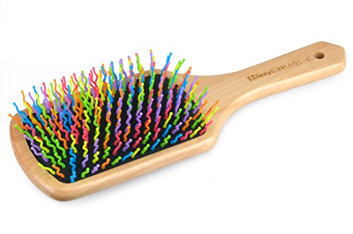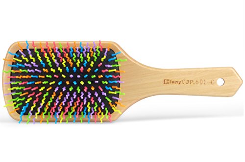Dianyi Rainbow Nylon Bristle Massage Cushion Base Wood Handle Hair Brush