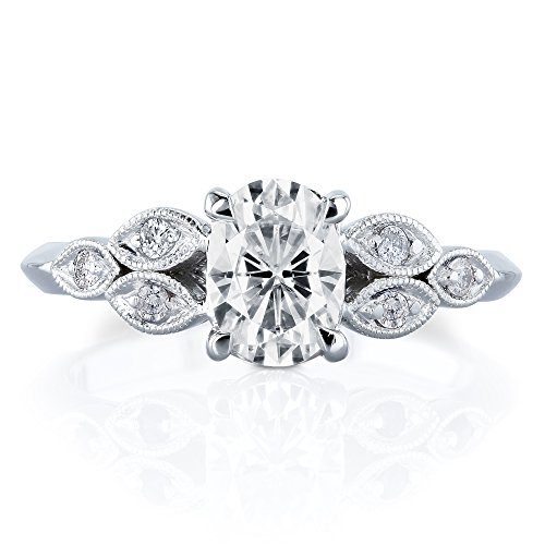 -. Title : 1ct TGW Vintage Oval Cut Moissanite (HI) Engagement Ring with Diamond Accents in 14k White Gold