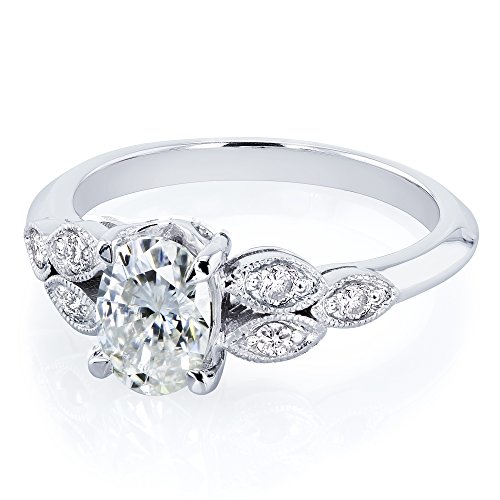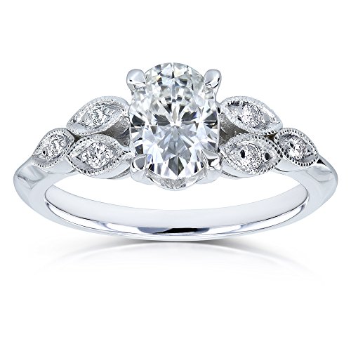 -. Feature : Kobelli vintage engagement ring / Oval 5x7mm near colorless moissanite (H-I color grade) / Diamond accents / Designed, made, and distributed by Kobelli in Los Angeles, California / Complimentary gift box included