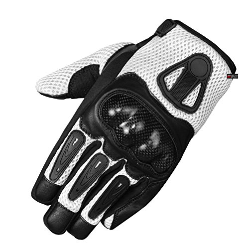 -. Title : New Men Short Motorcycle Leather Mesh Gloves White Carbon Fiber