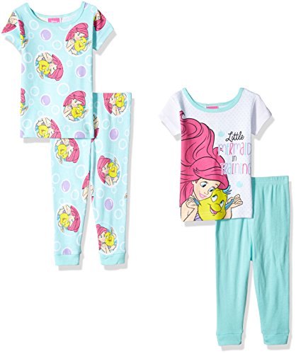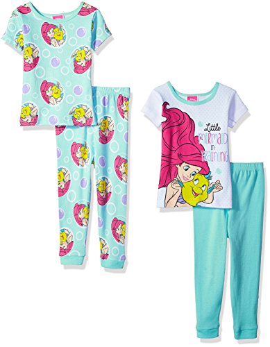Disney Girls' Little Mermaid 4-Piece Cotton Pajama Set, Light Blue, 12M