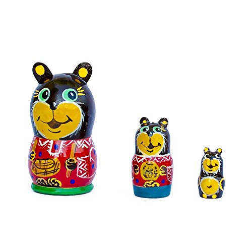 -. Title : 3" Set of 3 Three Little Bears Wooden Russian Nesting Dolls