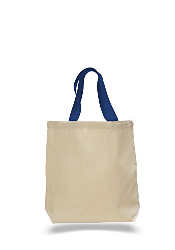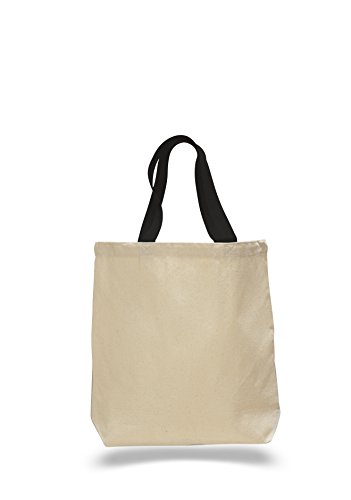 PACK OF 6 - Heavy Canvas Plain Tote Bags with Bottom Gusset and Colored Canvas Web Handles (Mix-Assorted)