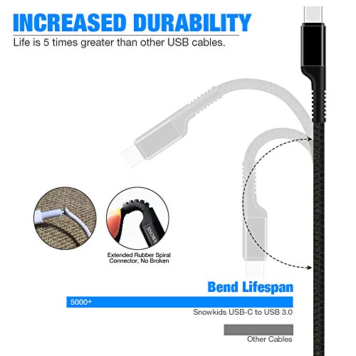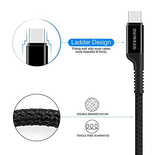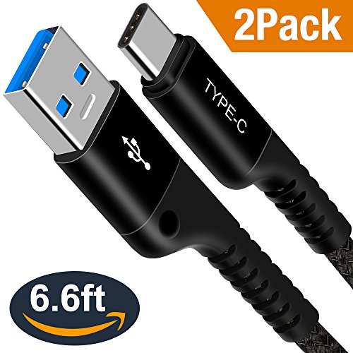 USB C Cable, Snowkids USB 3.0 Type C Cable (2-PACK 6.6ft) Nylon Braided USB A to C Fast Charger Cable for Samsung Galaxy S8 Plus,Google Pixel XL,LG G6 V20 G5,Nexus 6P,Hero 5,Nintendo Switch (Black)