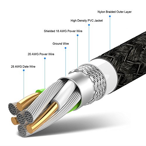 【DURABLE NYLON BRAIDED CHARGING CABLE】Hard and soft PVC connector material and extended rubber spiral connector technology guarantee a long service life for type c usb devices. Double-braided nylon exterior prevents tangling and adds another layer of durability.