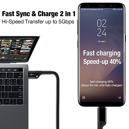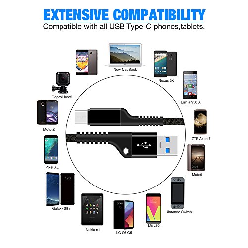 【2 PACK (USB 3.0, 6.6FT) USB TYPE C CABLE】The usb c charger cable enable up to 5 Gbps data transfer-let you transfer an HD movie in 5 seconds. Conforms to the USB C 3.0 specification version 1.1, standard 56kΩ pull-up resistor, which ensures a safe charging at 3A Maximum.
