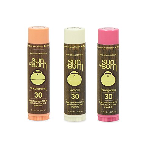 Three packs of your favorite Sun Bum 30 SPF lip balm! With added Aloe and Vitamin E, Sun Bum lip balm will protect and moisturize your kisser all day long... just try not to lick it off. Features / Benefits: Relieves the drying effects of sun, wind and sea Restores and nourishes chapped lips Contains soothing Cocoa Butter Gluten Free / 100% Vegan Petrochemical Free PABA FreeFeature