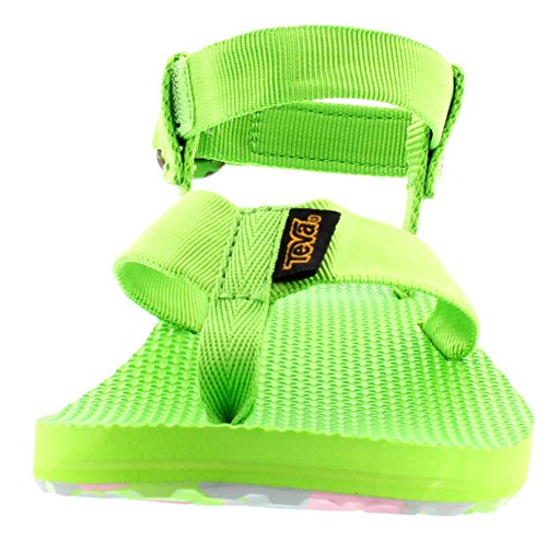 Sporty sandal with webbing upper featuring adjustable ankle strap, marbled hardware, and logo tag at toe post
