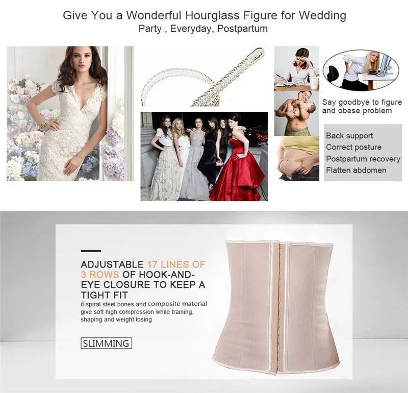 3 .Style : plus Size ,.4 spiral steel bone .3 rowsHook & Eye Closure in the front , firmcontrol ,Waist trainer ,Tummy Trimmer ,Fat comppression ,Slimming ,Weight Loss ,Corrective Posture ,Lumbar Supports ,underbust corseletefor women lady girlspostpartume Hot Mom.