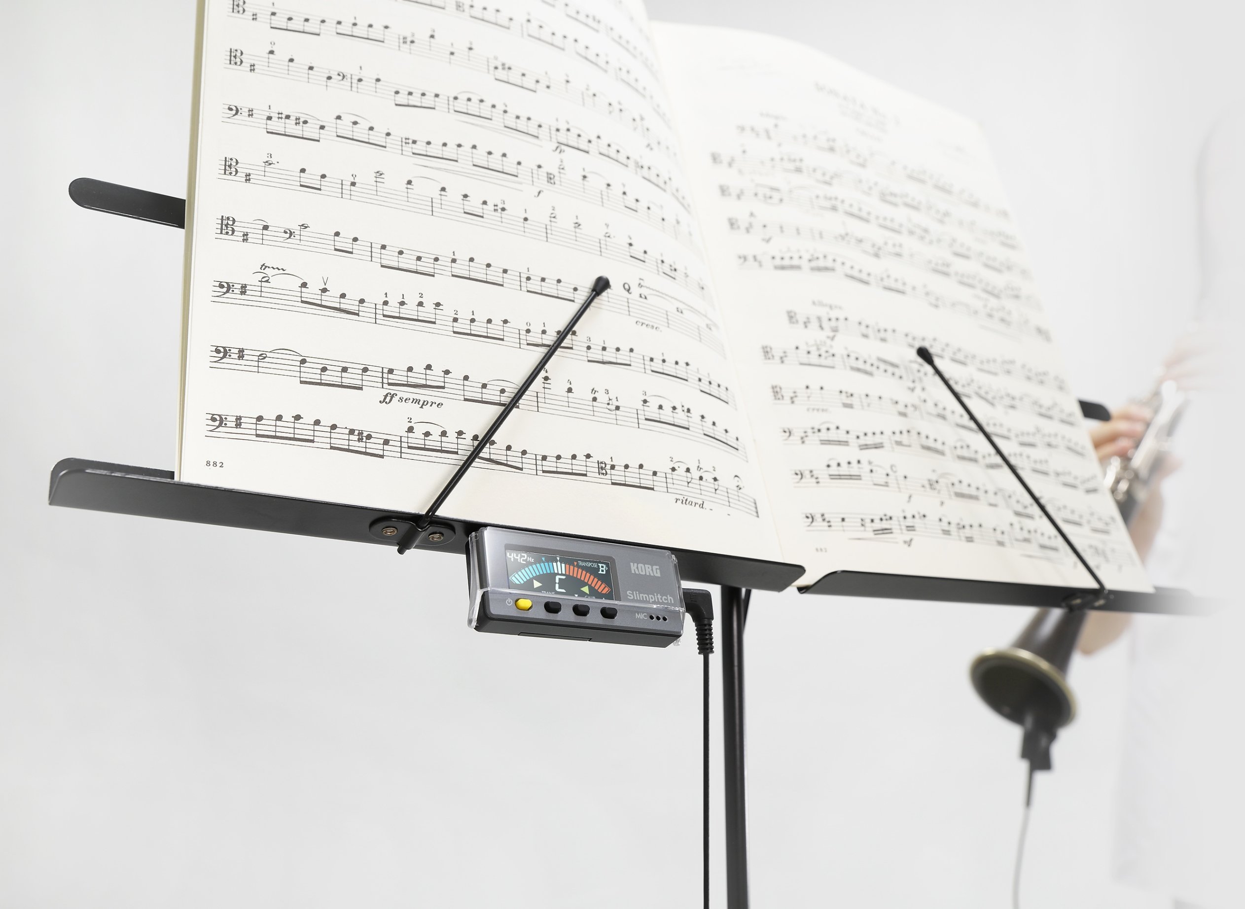 Compact tuner with dedicated microphone (br> A new compact tuner for brass bands and orchestral instrument players has been completed.Slimpitch realizes high visibility with high brightness, high contrast color LCD display.Body is