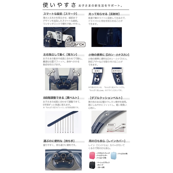 Rakuten 큐 B 개구쟁이조 란도세루(초등학생이 어깨에 매는 가방)(WPGCAH 펄 스카이) 무료 우송현관 앞까지 납품 6년 보증