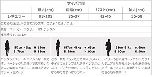 -. Feature : 薄手で伸縮性に富んだ、幅広いシーズン対応できる大活躍のロングカーディガン、アウターです。かわいい豊富なカラーバリエーション。 / 柔らかく、やさしい肌触りで長時間の着用も快適です。生地は伸縮性があり、フリーサイズで幅広い体型の方に着ていただけます。 / 紫外線や室内の冷房対策にも適してます。 / 肌触りの良い生地で、着心地が良いです。※こちらはボタンがついていない商品になります / サイズ:フリーサイズ(着丈:約106cm、肩幅:約39cm、袖丈:約58cm)