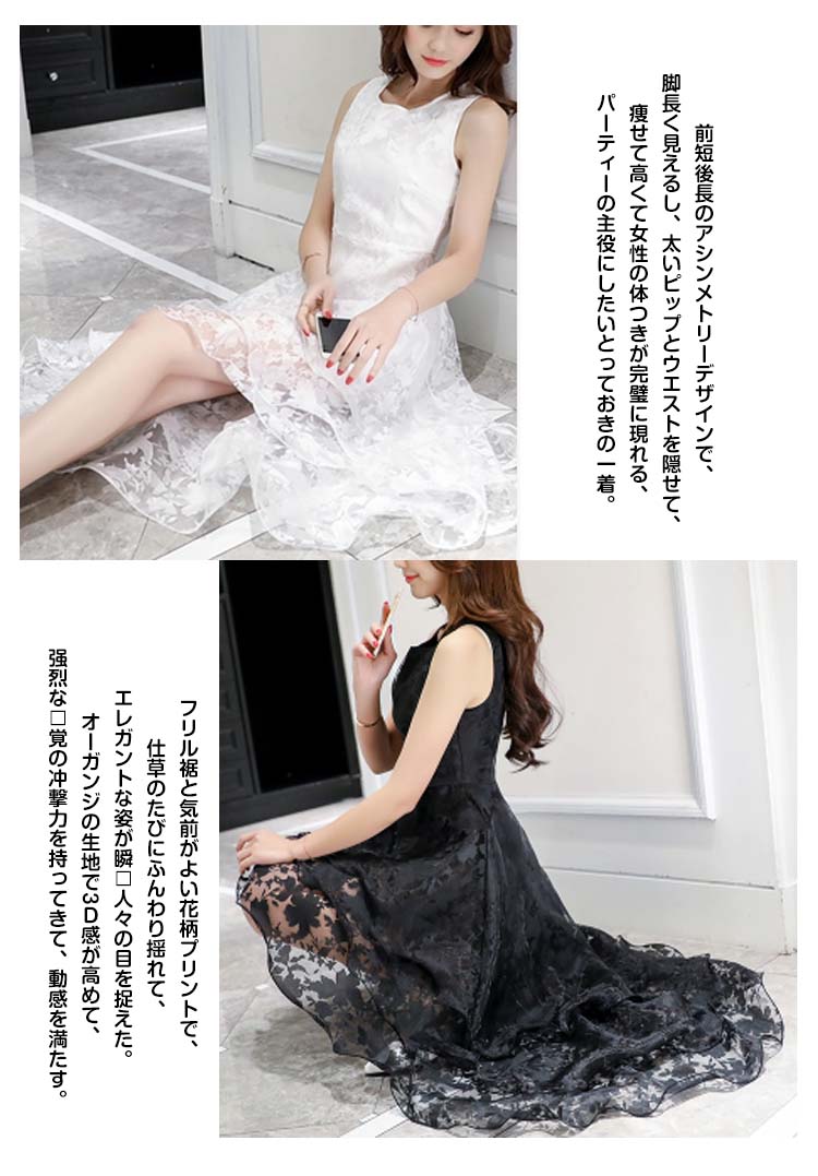 | セクシーで上品なプリンセスワンピース。ラウンドネックと肩部のデザインで顔が小さくなり、腕もほっそり、レディースの知性優雅を明らかに示す。前短後長のアシンメトリーデザインで、脚長く見えるし、太いピップとウエストを隠せて、痩せて高くて女性の体つきが完璧に現れる、パーティーの主役にしたいとっておきの一着。フリル裾と気前がよい花柄プリントで、仕草のたびにふんわり揺れて、エレガントな姿が瞬?人々の目を捉えた。オーガンジの生地で3D感が高めて、?烈な?覚の冲撃力を持ってきて、動感を満たす。 | |