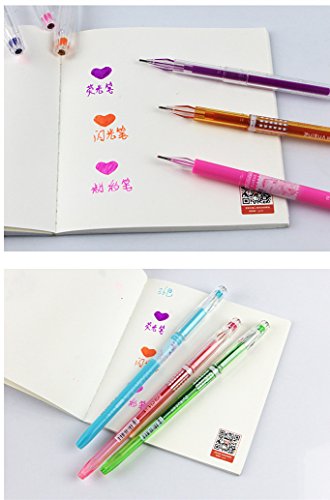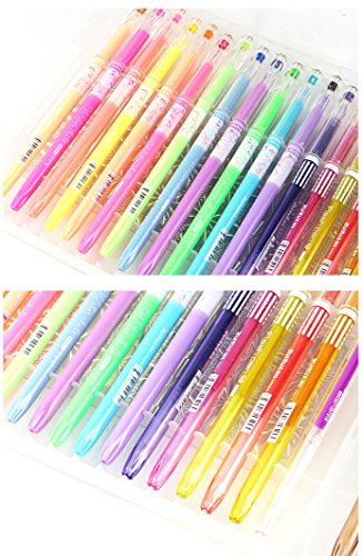 36 Exclusive Assorted Colors: 36 exclusive color, 12 Glitter Ink,12 Neon pen and 12 Pastel pen, no repeated color in the case. With a diamond faceted design philosophy, the gel color pens present high-end quality shape design. Once you hold these pens, you would be tempted to write down and paint beautiful and wonderful items