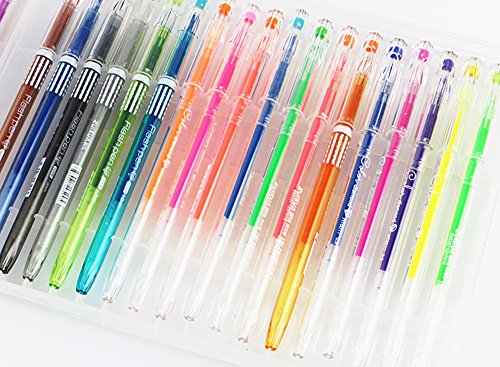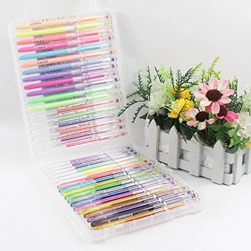 Transparent plastic case help your color pens are always in organized order, which never mess with other stuff in your bag. And each gel pen can be stored in its own individual insert and comes with a cap for long-lasting use. All colors always are clear at a glance, you can easily to pick up which color you would like to use.