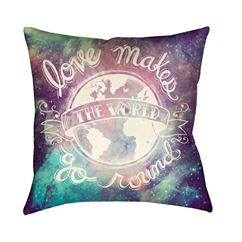 Studio : Laural Home Publisher : Laural Home Product Description With a graphic print, this 18-inch square pillow will make the perfect addition to your home. The multi and purple colors of this polyester Love Makes the World Go Round pillow from Laural Home will add warmth and style to your decor.Pillow Shape: SquareMaterial: PolyesterStyle: NoveltyPattern: Graphic PrintSet Include: One PillowCare Instruction: Spot CleanPillow Type: AccentFill Type: PolyesterSize: 18 inches wide x 18 inches highColor: Multi, Purple 0