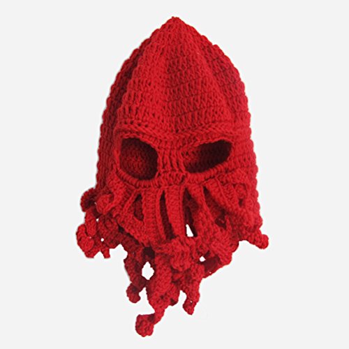 -. Title : Only Faith Adult Unisex Creative Knitted Octopus Hat Cap Mask Hat (Red)