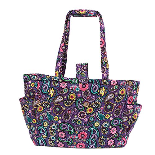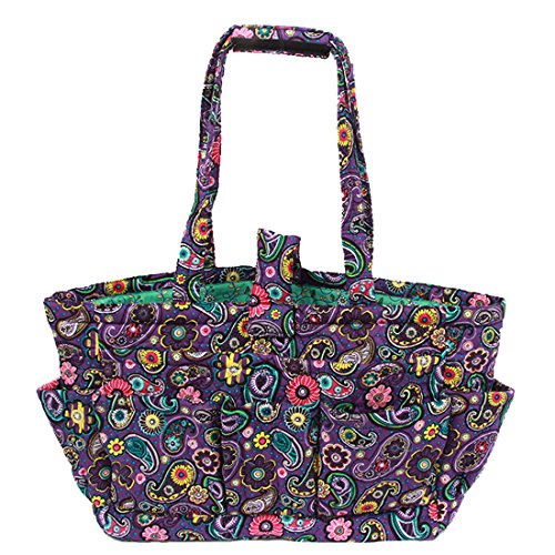Floral Quilted Cotton Needle Bag Knitting Bag Yarn Storage Tote (MYXB-Purple&Green)
