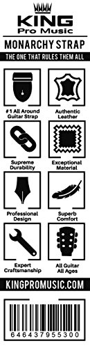 -. Brand : KING -. EAN : 0646437955300 -. Feature : ✔ PREMIUM NYLON with ADJUSTABLE LENGTH. Comfortable 2" width / ✔ HIGH QUALITY GENUINE LEATHER ENDS that are DURABLE, attach SECURLEY and look great / ✔ EXTRA THICK DURABLE PLASTIC BUCKLES won't mar or scuff guitar / ✔ EXPERT CRAFTSMANSHIP with a CUSTOM DESIGN LOOK for acoustic, electric, classical, and bass guitars. / ✔ LIFETIME GUARANTEE -. Label : King Pro Music -. Manufacturer : King Pro Music -. PackageQuantity : 1 -. ProductGroup : Musical Instruments -. ProductTypeName : INSTRUMENT_PARTS_AND_ACCESSORIES -. Publisher : King Pro Music -. Studio : King Pro Music -. Title : SP.R.ING SALE! PREMIUM Guitar strap with Leather Ends from King Pro Music -. UPC : 646437955300