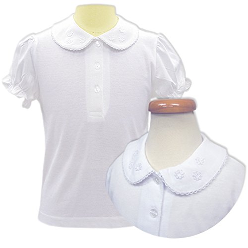 -. Title : キッズ (オンスクール) OnSchool 1104 ニットかぶりタイプ衿小花モチーフ付半袖ブラウス 白 オフホワイト