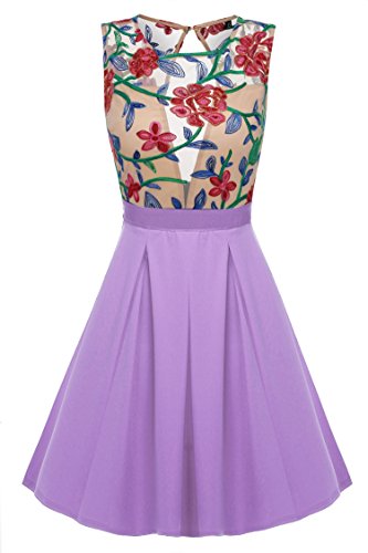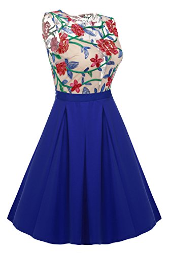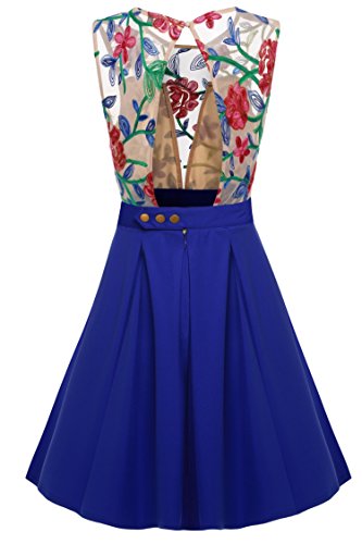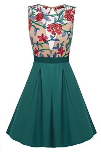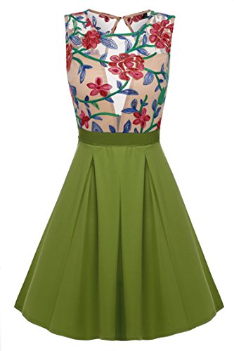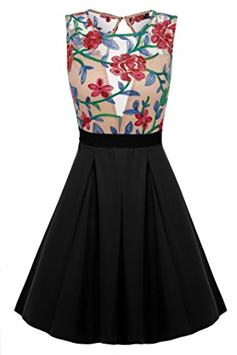Style: Scoop Neck, Sleeveless, Side Zipper, Calf Length, Patchwork, Embroidery, Retro, Casual, Party, Cocktail Dress