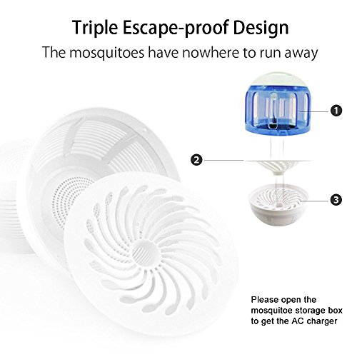 360⁰ Escape-proof Mesh: a unique funnel mesh between the storage box and the fan, efficiently prevents mosquitoes from flying away once trapped inside