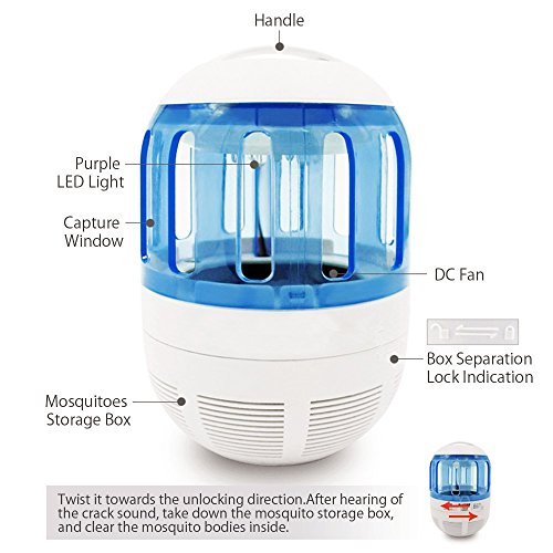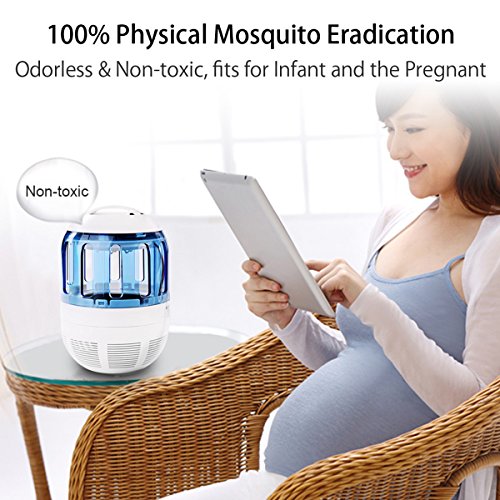 Powerful mosquito killer bug zapper, WORK FOR MOST BUGS. 100% Physical Mosquito Eradication: Non-Chemical, Non-Radiation, Ultra-Low Noise, odor free, no baits or refills needed, no high-voltage electric shocks, Completely Eco-friendly and Safe for the pregnant, infants and pets, healthier than conventional chemical pesticides or electric zapper