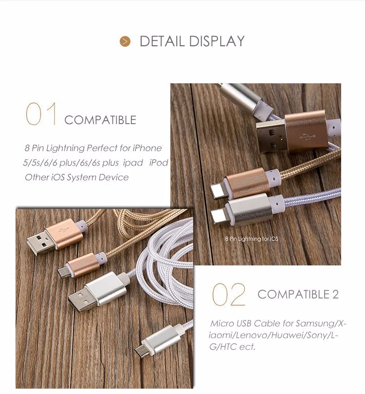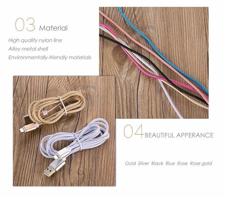 Features for cable:Original Durable Nylon Line Metal Plug USB Cable