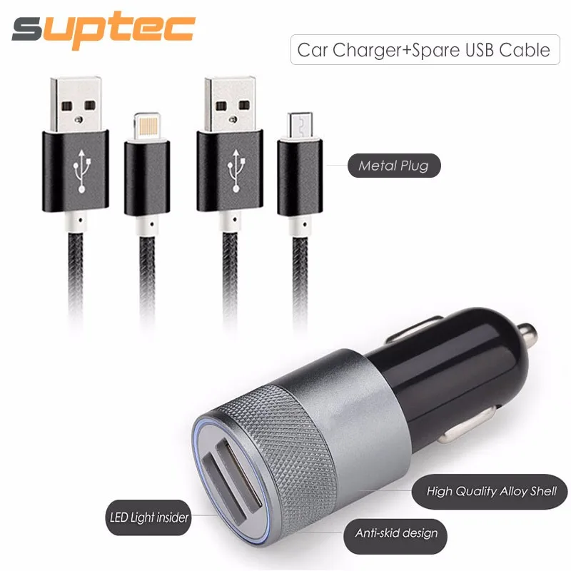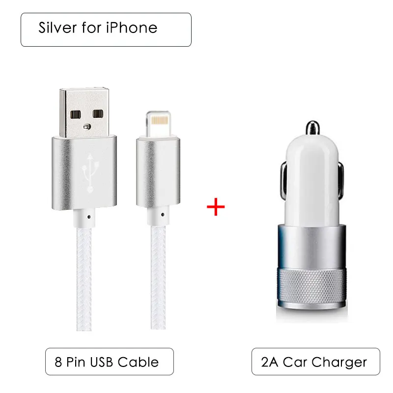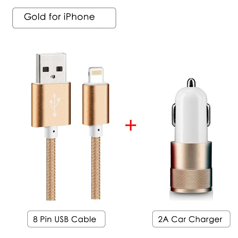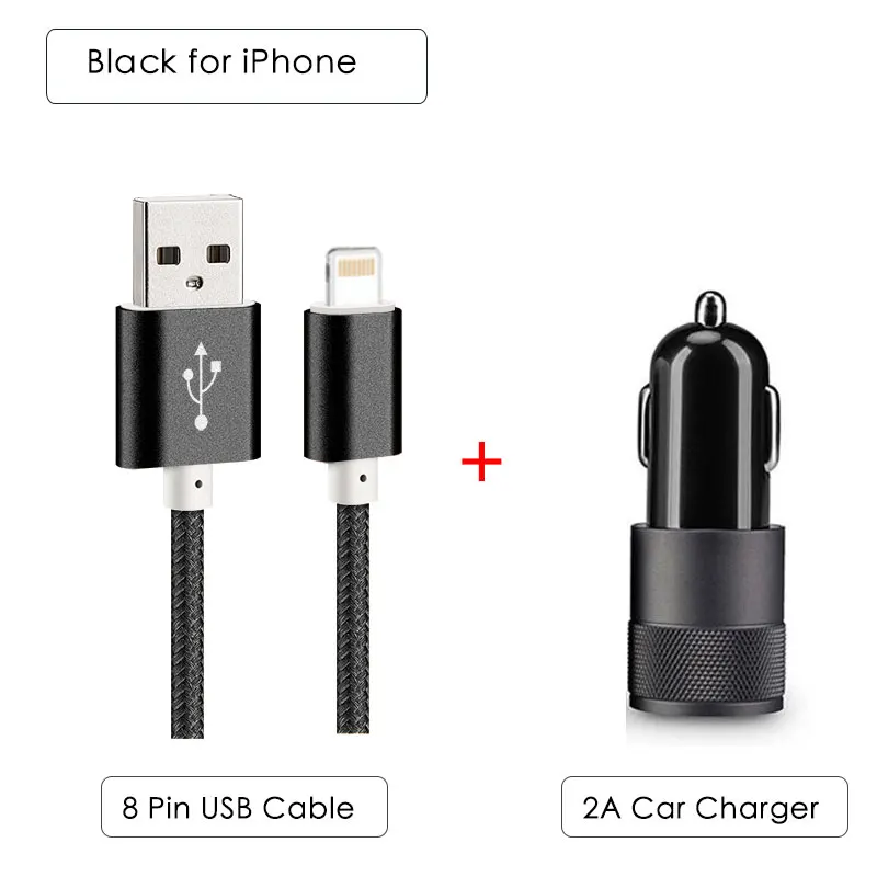 Accessory Bundle:2 Port Car Charger + 1M Nylon Wire Cable for iPhone/Micro/Type-C