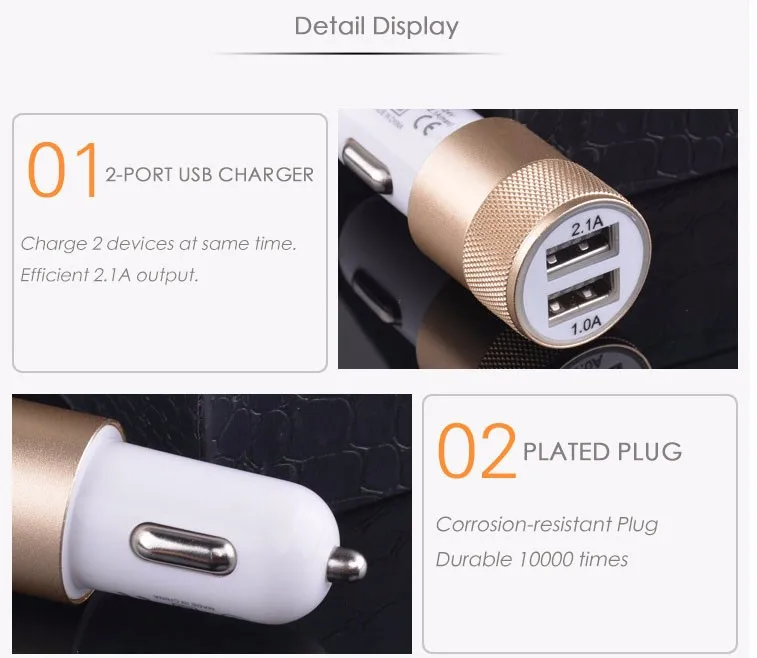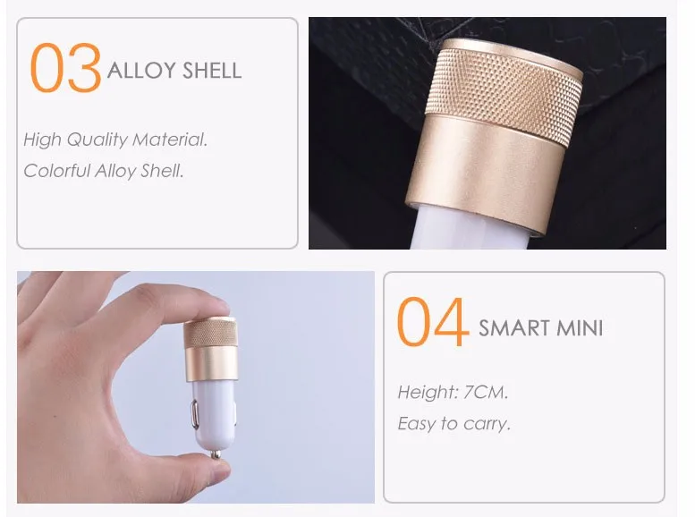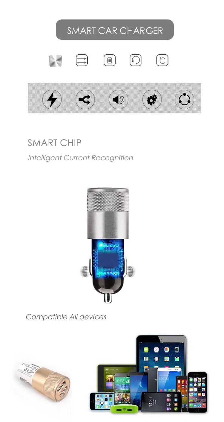 Features for charger:5V 2A Alloy Shell Car Charger